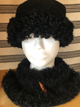 Eksempelbildet viser modellen laget av skinn av leicesterfår som er gjennomfarget svart. Det kan være litt vanskelig å skaffe, men hatten kan lages i skinn fra andre saueraser. For at den skal holde fasongen er det viktig at skinnet er ganske stivt.
